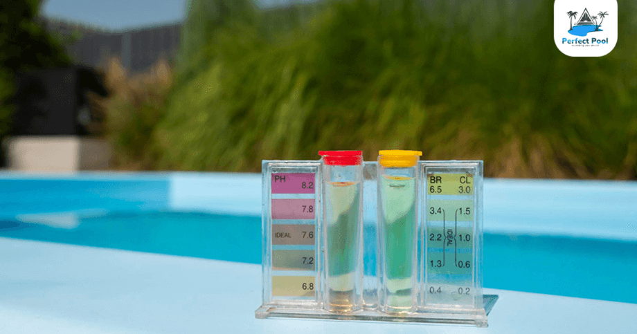 โดยใช้ชุดตรวจน้ำเพื่อดูค่าพื้นฐาน และปรับให้อยู่ในระดับมาตรฐาน (pH 7.2–7.6) ก่อนใส่สารเคมีลงในสระว่ายน้ำ